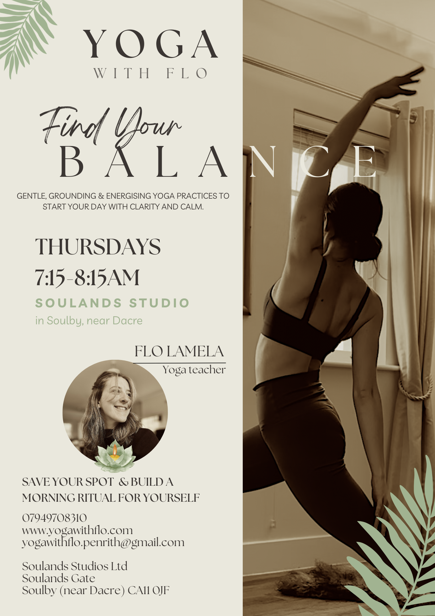 I will guide you through a gentle yet energising Yoga class . We’ll combine movement, breath, and mindfulness to awaken the body, ease the mind, and leave you stepping into your day feeling steady, clear, and refreshed.