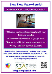 With her family of two boys she has developed an interest with teaching the Alexander Technique to children both in and out of school. This type of work really inspires Alison to create fun ways of learning both for adults and children, helping people learn in an easy way, feeding their confidence and spirit.https://www.integratinghealth.com/slow-flow-yoga-at-penrith